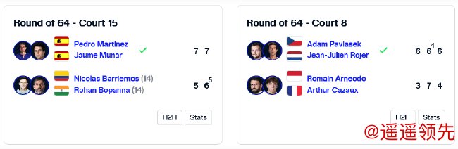 当日进行的2场男双赛果如下: